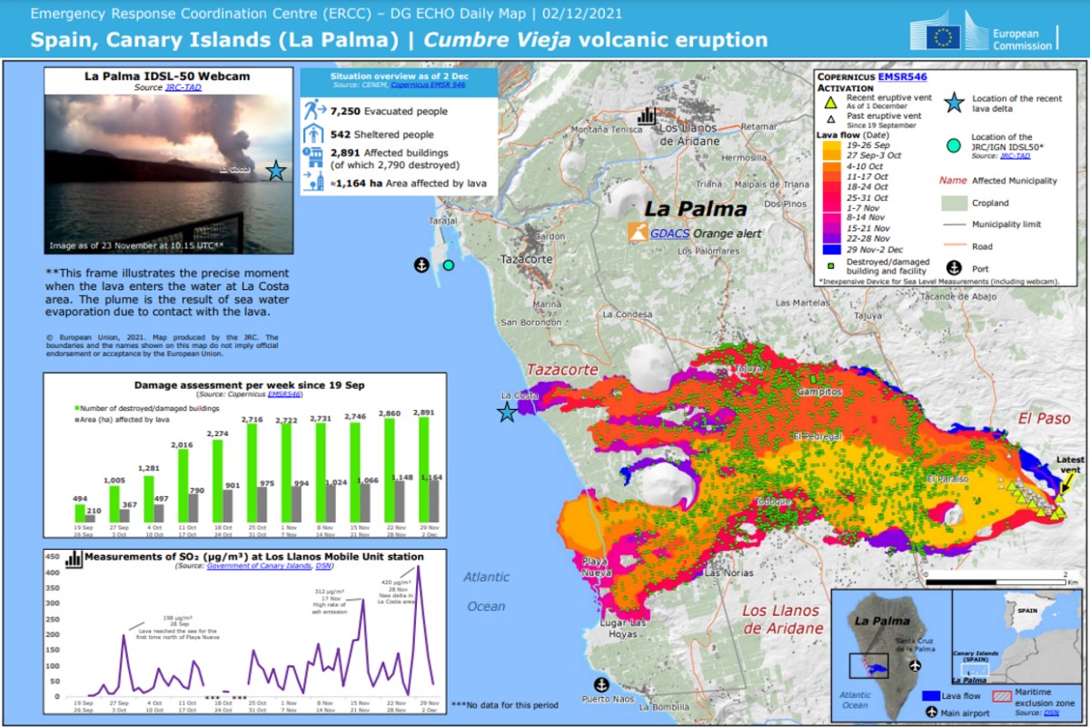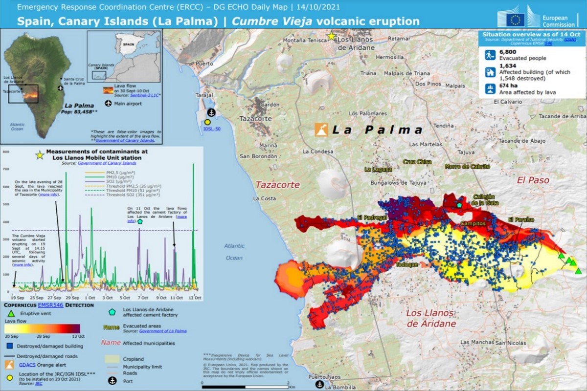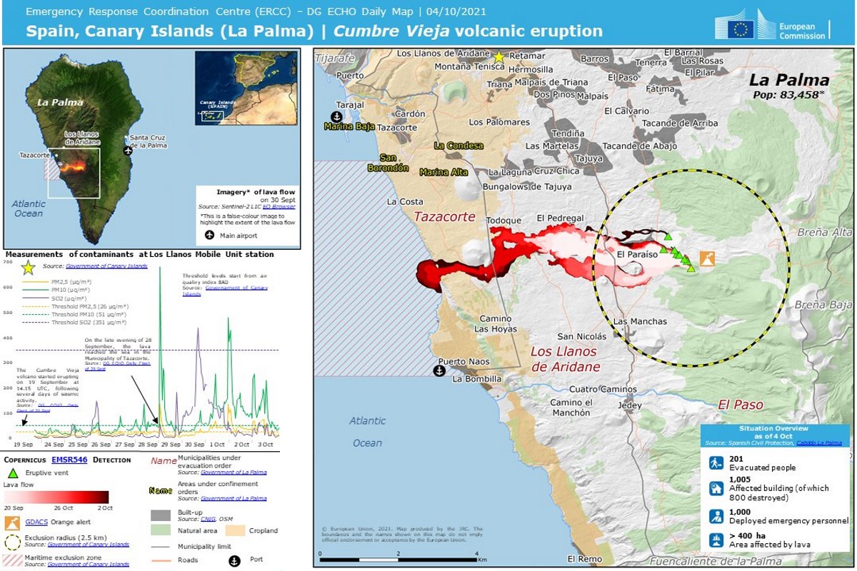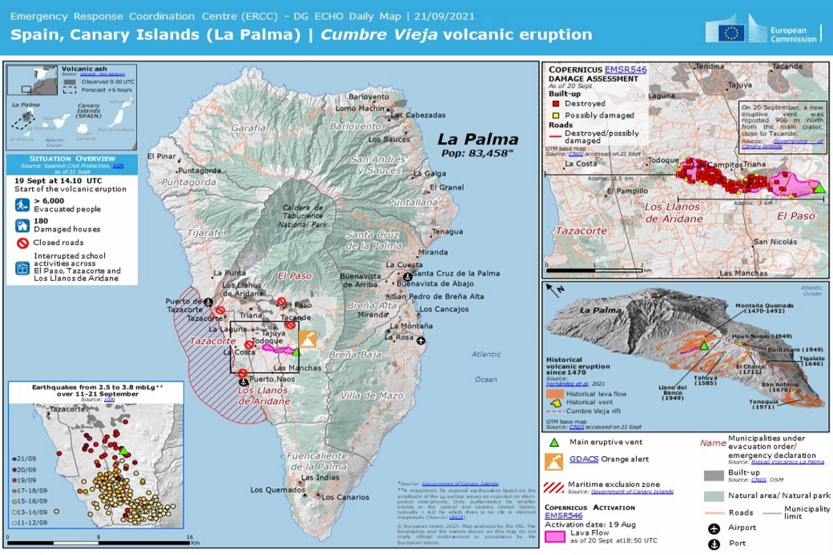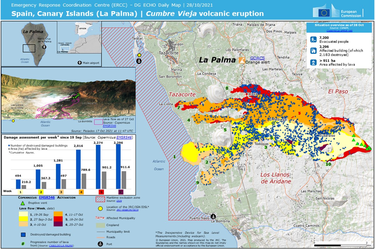 Erupción volcánica en Cumbre Vieja (La Palma) . Mapas elaborados por el Centro de Coordinación y Respuesta de Emergencias (ERCC) de la DG ECHO