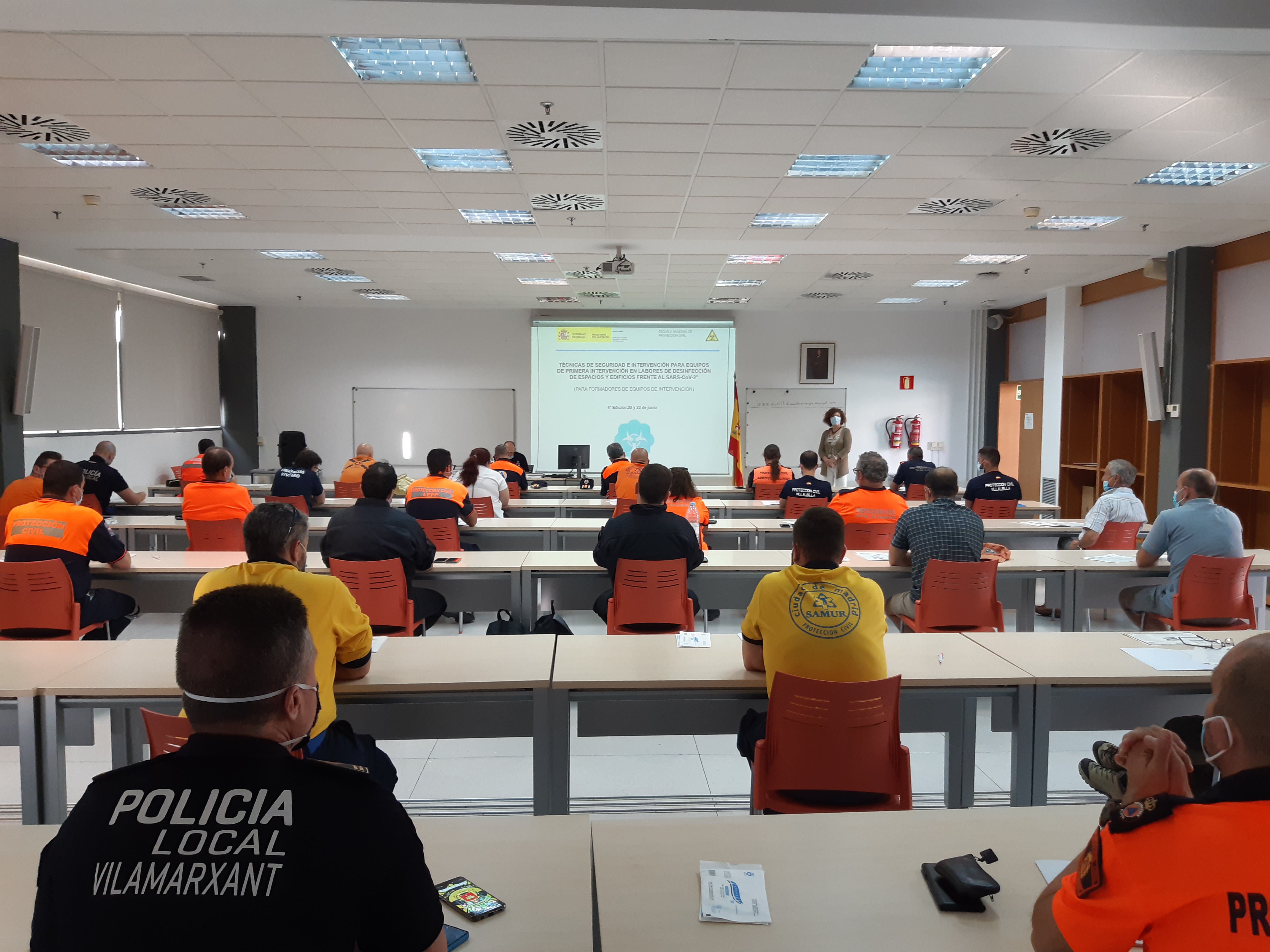 La Escuela Nacional de Protección Civil, dando cumplimiento a uno de los acuerdos adoptados por el Comité Estatal de Protección Civil Covid-19, celebrado el 27 de abril, ha organizado durante este mes de junio siete ediciones del curso sobre técnicas de seguridad e intervención para equipos de primera intervención en labores de desinfección de espacios y edificios para hacer frente al SARS-CoV-2.
