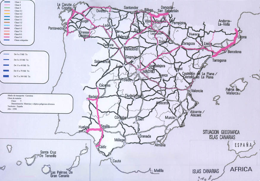 Materias y objetos peligrosos diversos, en España, para el año 1998