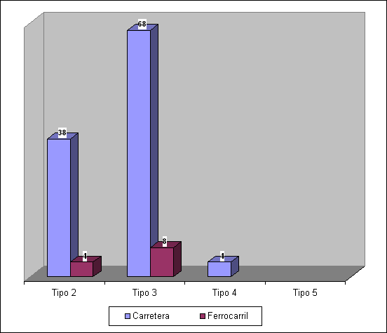 fuga o derrame del contenido. Tipo 3: Como consecuencia de un accidente el continente ha sufrido desperfectos y existe fuga o derrame del contenido. Tipo 4: Existen daños o incendio en el continente y fugas con llamas del contenido. Tipo 5: Explosión del contenido destruyendo el continente. |